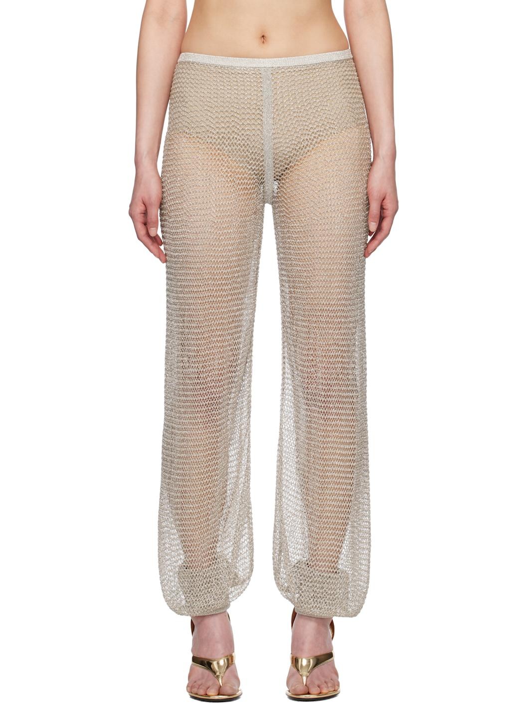 Open-knit viscose- and paper-blend trousers. · Loose-fit · Low-rise · Elasticized waistband · Rib-knit cuffs · Unlined Supplier color: Silver 65% viscose, 20% paper, 15% polyamide. Made in Italy 251483F087005