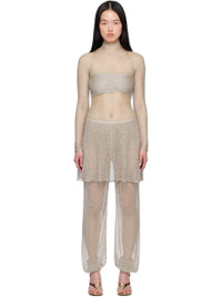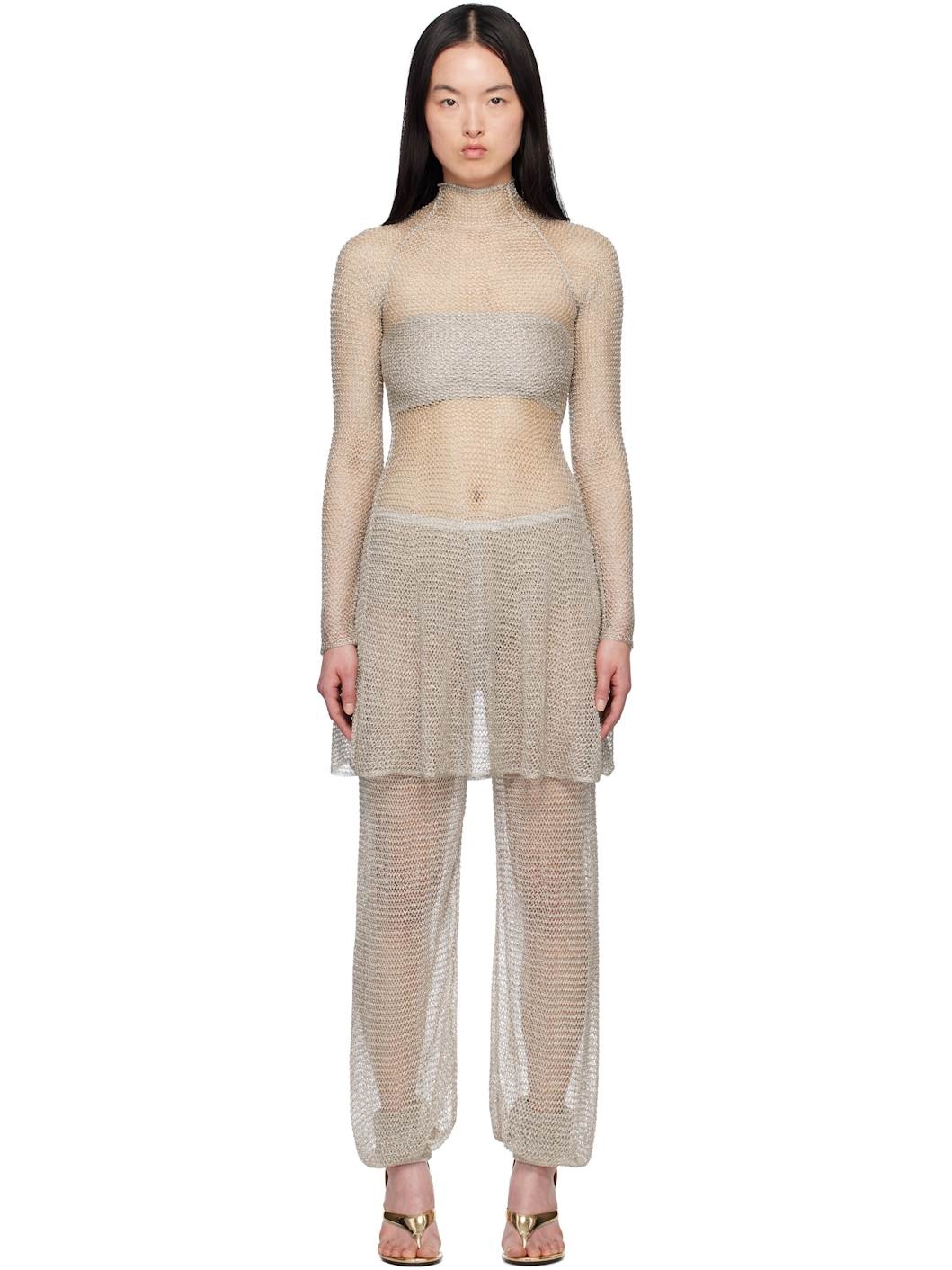 Open-knit viscose- and paper-blend midi dress. · Turtleneck · Raglan sleeves · Button fastening at back collar · Includes stretch viscose jersey slip Supplier color: Silver Body: 65% viscose, 20% paper, 15% polyamide. Lining: 92% viscose, 8% elastane. Made in Italy 251483F054004