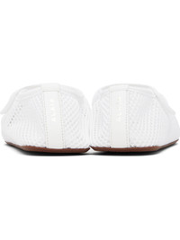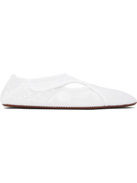 Sheer fishnet ballerina flats in white. · Elasticized collar · Velcro fastening at outer side · Grained lambskin trim with logo stamp at heel · Logo patch at padded lambskin footbed · Treaded rubber sole Supplier color: Optic white Upper: textile, lambskin. Sole: rubber. Made in Italy 252483F118015