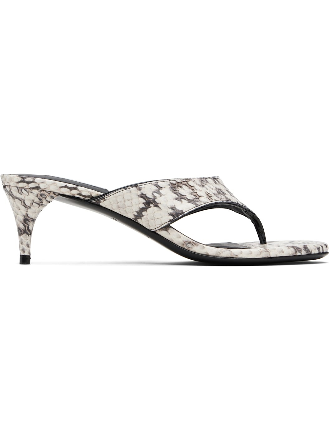Snakeskin heeled sandals. · Open toe · Thong-style strap at vamp · Lambskin lining · Covered kitten heels with rubber injection · Leather sole · Heel: H2.25" Supplier color: Blanc/Noir Upper: elaphe leather. Sole: leather. Made in Italy 252483F125000