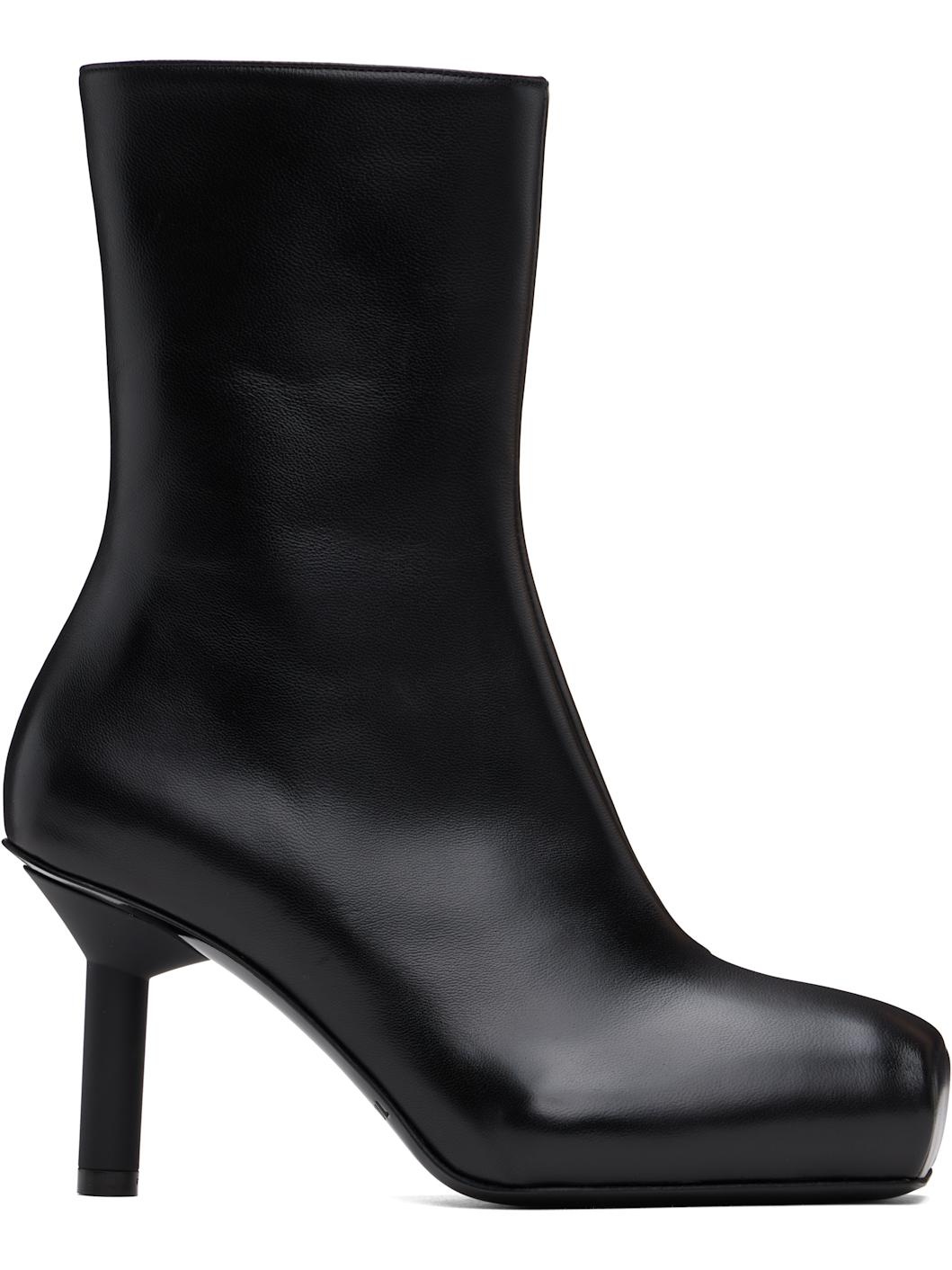 Ankle-high buffed leather boots in black. · Square toe · Zip closure at inner side · Buffed leather lining · Rubber stiletto heel · Patent leather sole · Heel: H3" Supplier color: Black Upper: leather. Sole: leather, rubber. Made in Italy 242288F113012