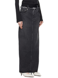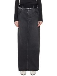 Gray Frayed Edge Denim Maxi Skirt