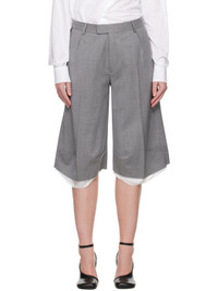 Stretch virgin wool delaine shorts. · Belt loops · Four-pocket styling · Zip fly · Darts at front · Creased legs · Exposed lining with raw edge at cuffs · Partial viscose satin lining Supplier color: Grey Body: 97% virgin wool, 3% lycra. Lining: 100% viscose. Made in Portugal 251288F088001