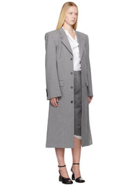 Stretch virgin wool delaine coat. · Notched lapel · Button tab at button closure · Welt pocket at chest · Flap pockets · Padded shoulders · Surgeon's cuffs · Central vent at back hem · Welt pocket at interior · Full viscose satin lining Supplier color: Grey Body: 97% virgin wool, 3% lycra. Lining: 100% viscose. Made in Portugal 251288F059002