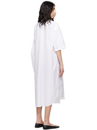 Oversized cotton poplin shirt-style maxi dress. · Asymmetrical construction · Spread collar · Concealed button closure · Logo embroidered at patch pocket · Shirttail hem · Dropped shoulders · Box pleat at back yoke Supplier color: White 100% cotton. Made in Portugal 251288F055012