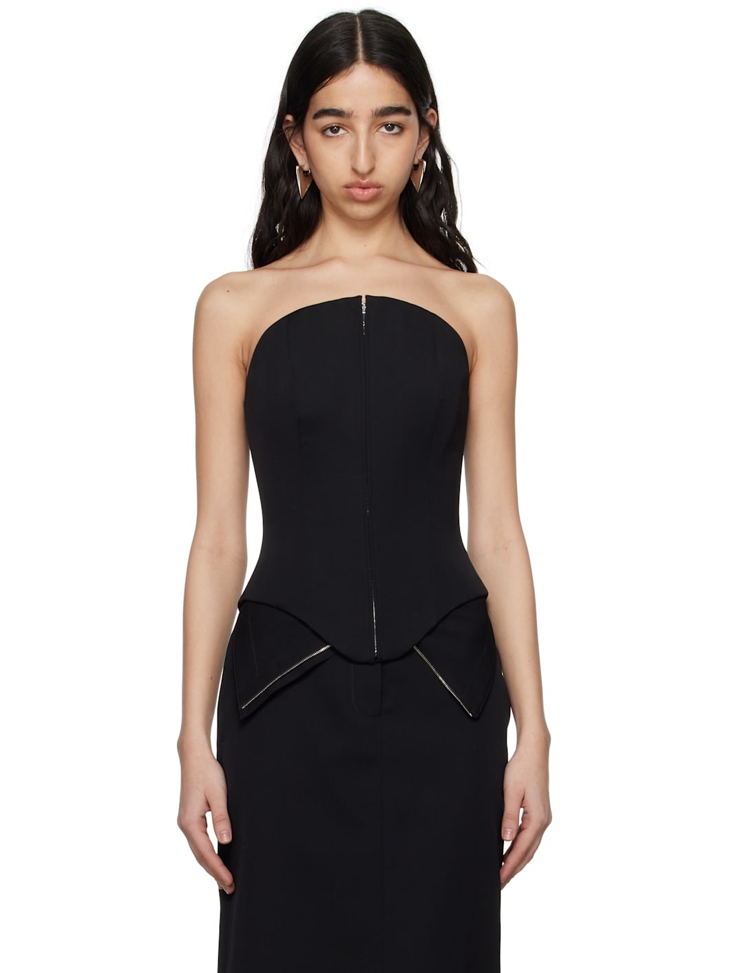 Wool twill corset-style top. Boning throughout. · Zip closure at front · Fully lined Supplier color: Black Body: 100% wool. Lining: 74% acetate, 26% silk. Made in Italy 251259F111000