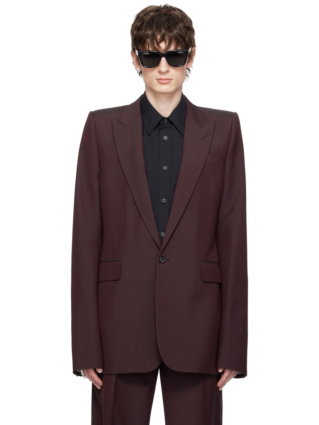 Plain-woven wool- and mohair-blend blazer. · Peaked lapel · Single-button closure · Welt pocket and flap pockets · Darts at front · Padded shoulders · Surgeon's cuffs · Eyelet and curb chain with hardware at back collar · Central vent at back hem · Welt pockets at interior · Full satin lining · Logo-engraved silver-tone hardware Supplier color: Bordeaux Body: 75% wool, 25% mohair. Lining 1: 100% cupro. Lining 2: 100% viscose. Lining 3: 100% cotton. Made in Italy 251259M195006