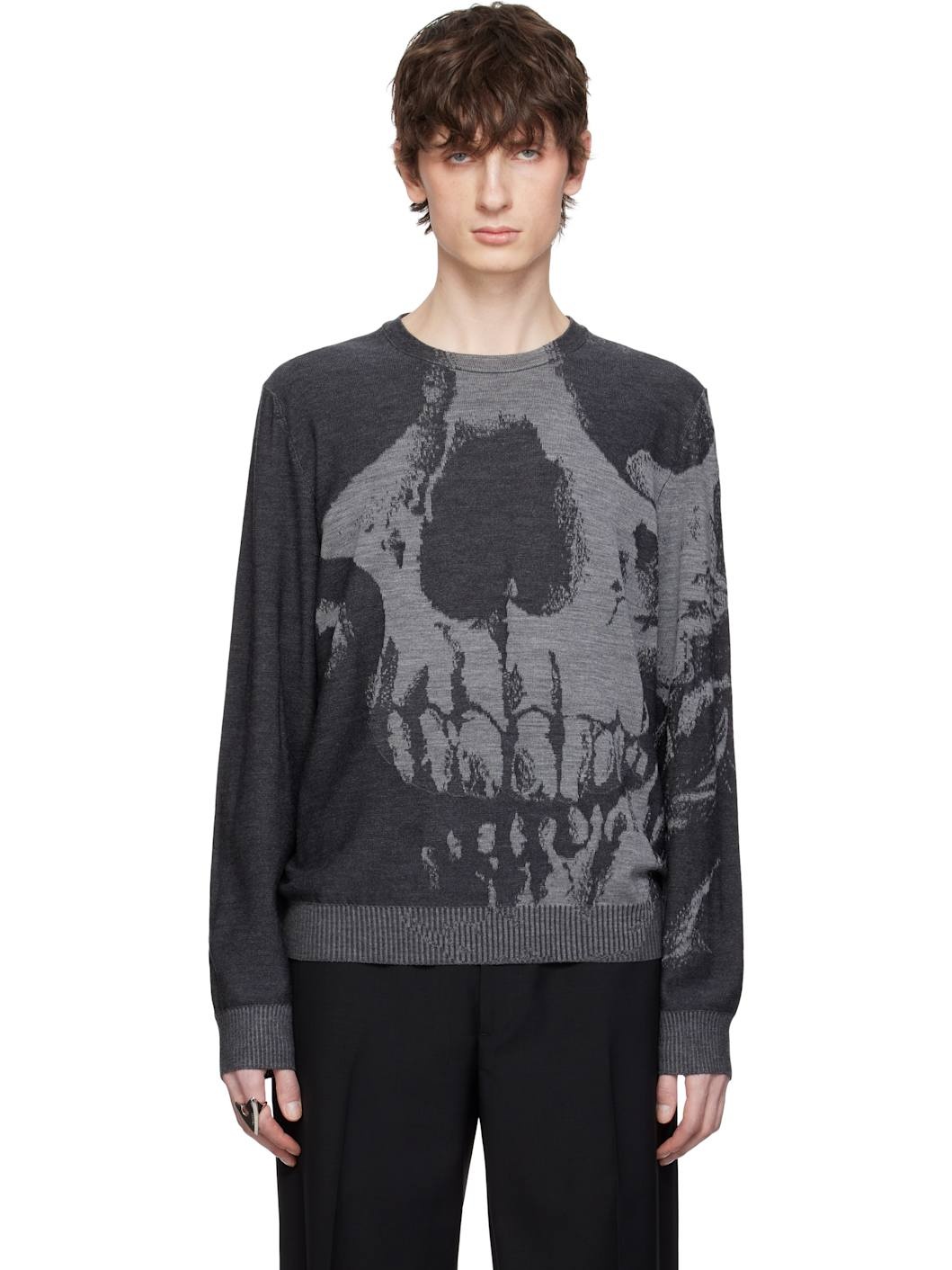 Knit wool sweater. · Crewneck · Jacquard logo graphic at front · Rib-knit hem and cuffs Supplier color: Black/Grey 100% wool. Made in Italy 251259M204000