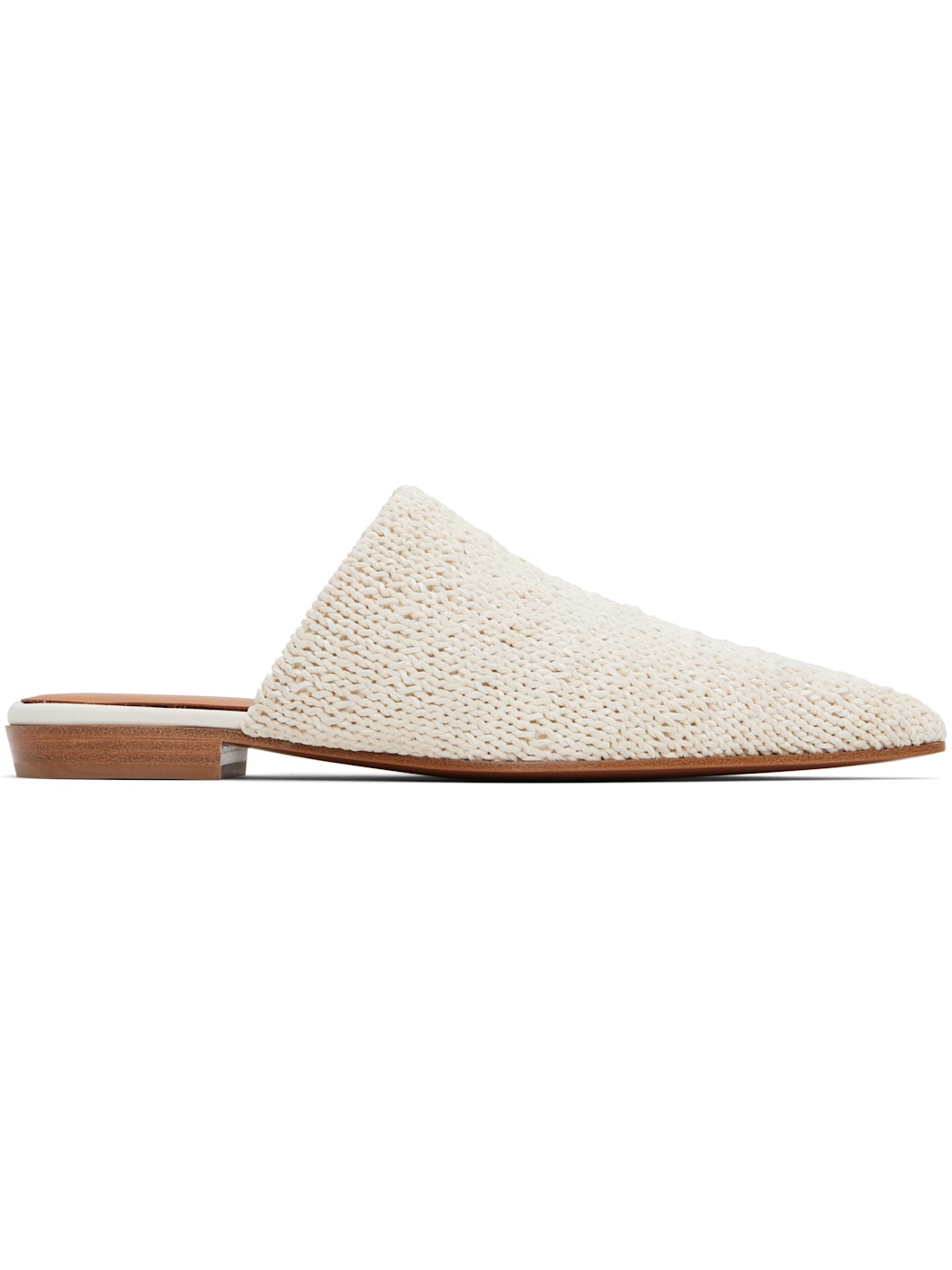 Knit calfskin mules in off-white. · Pointed toe · Buffed calfskin lining · Stacked leather heel with rubber injection · Leather sole Supplier color: Ivory Upper: calfskin. Sole: leather, rubber. Made in Italy 251259F121000