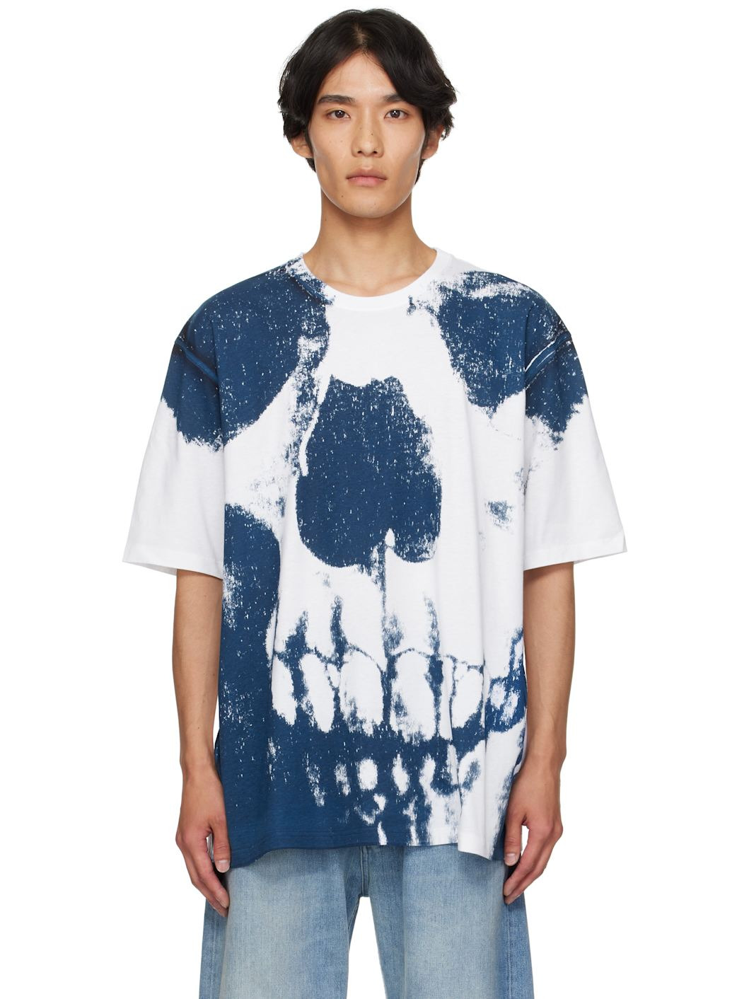 Recycled cotton jersey T-shirt. · Rib-knit crewneck · Graphic printed at front · Logo printed at back collar Supplier color: White/Blue 100% cotton. Made in Italy 251259M213016