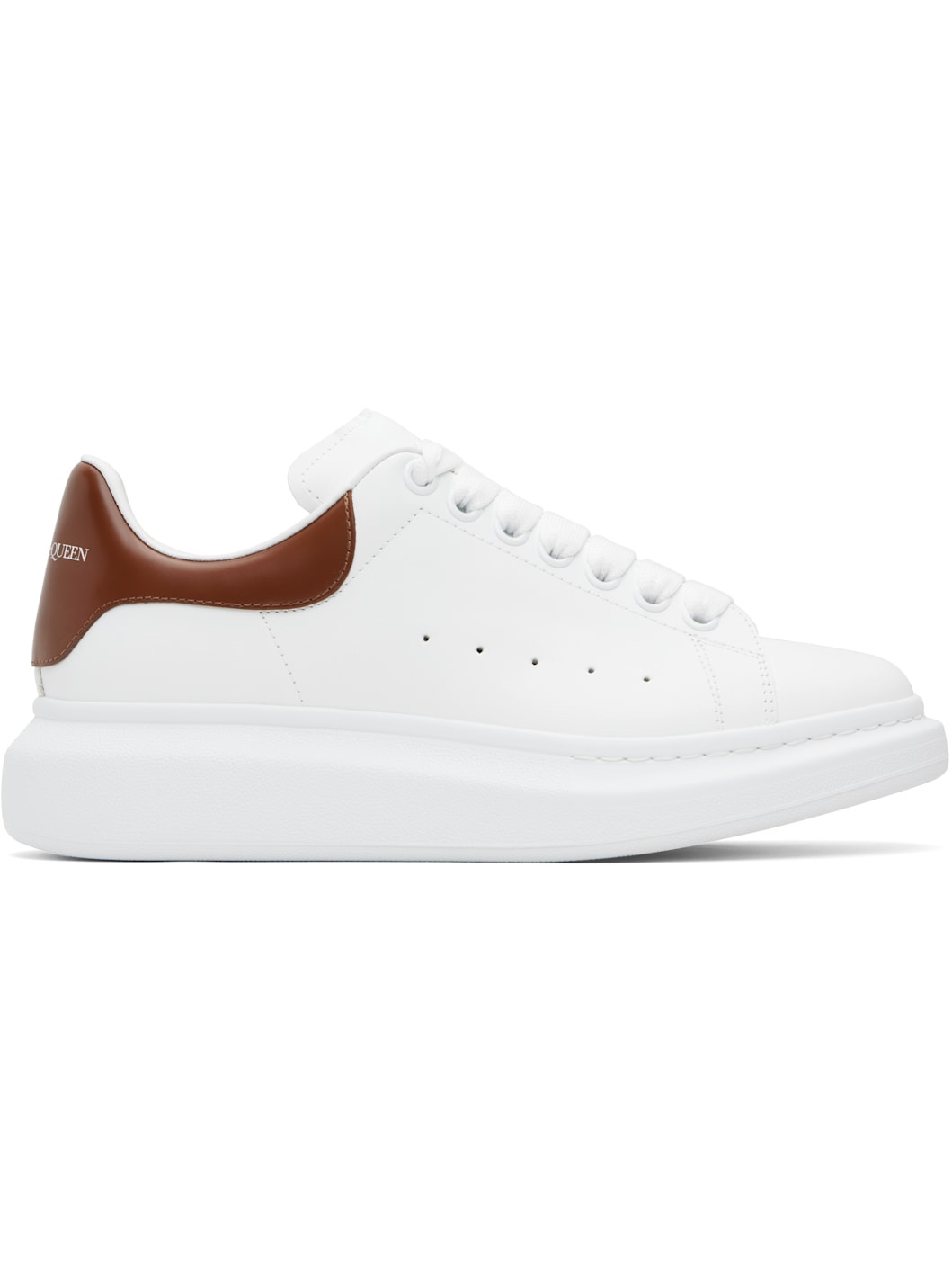 Low-top buffed calfskin sneakers. · Lace-up closure · Logo printed at tongue · Padded tongue and collar · Perforations at sides · Logo printed at polished calfskin heel tab · Treaded rubber sole · Includes additional laces Supplier color: White/Sandal brown Upper: calfskin. Sole: rubber. Made in Italy 251259M237023