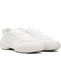 Low-top satin and faux-suede sneakers. · Serrated edges throughout · Rubber cap toe · Lace-up closure · Padded tongue · Logo bonded at outer side · Logo-embossed pull-tab at heel collar · Textured rubber sole Supplier color: Ice/White/Absolute white Upper: textile, synthetic. Sole: rubber. Made in Italy 251259F128016
