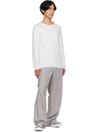 Low-top paneled buffed calfskin sneakers. · Lace-up closure · Logo embossed at tongue · Padded tongue and collar · Logo printed at heel tab · Treaded rubber sole · Includes additional laces Supplier color: Off white/Cool grey Upper: calfskin. Sole: rubber. Made in Italy 251259M237021
