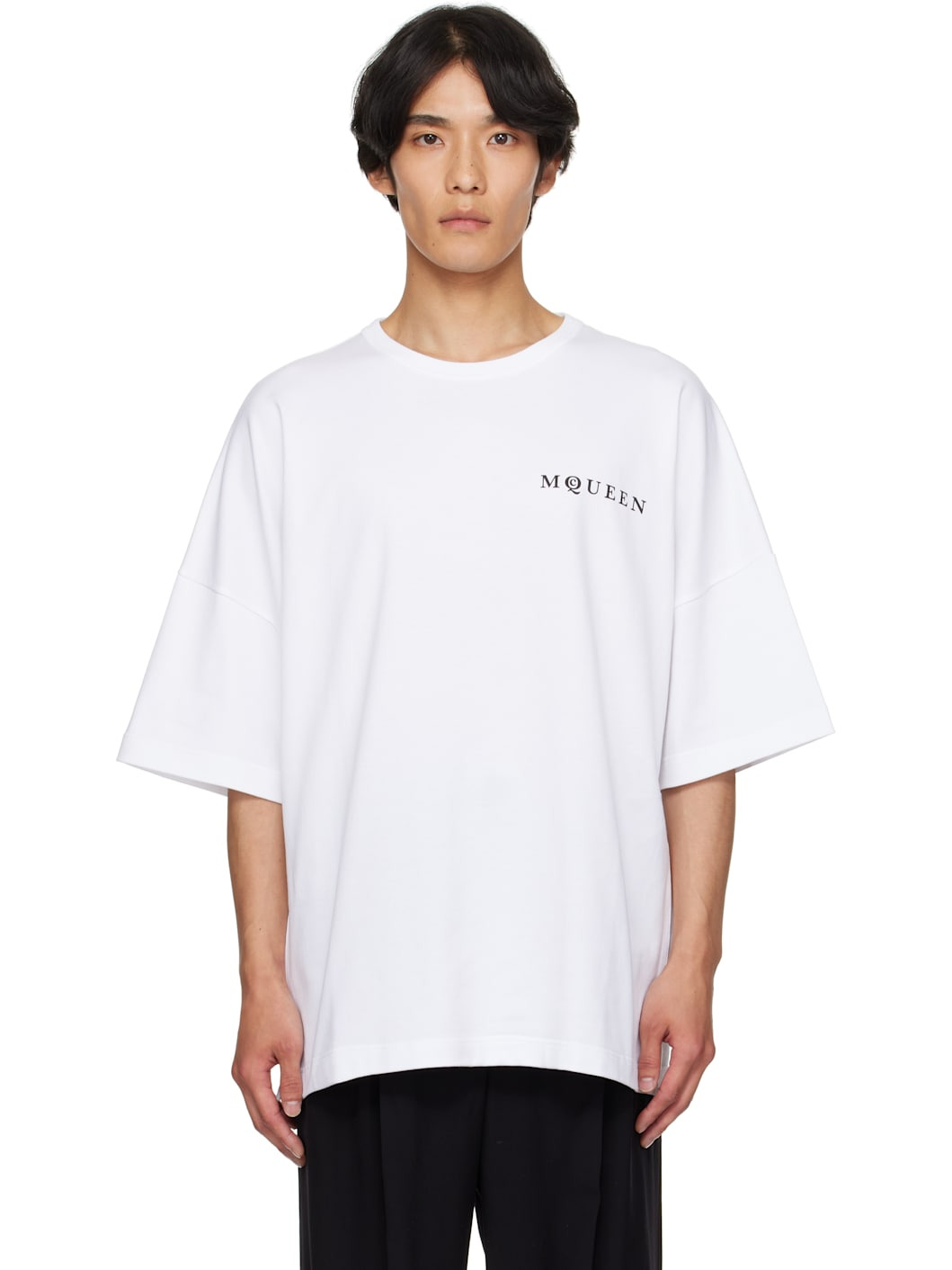 Cotton jersey T-shirt. · Rib-knit crewneck · Logo printed at chest and back · Dropped shoulders Supplier color: White 100% cotton. Made in Italy 251259M213013