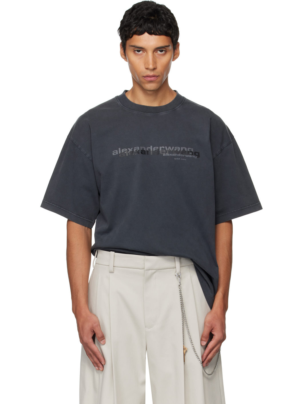 Cotton jersey T-shirt. · Rib-knit crewneck · Bonded and printed logos at chest · Dropped shoulders Supplier color: Washed black 100% cotton. Made in Portugal 252187M213014