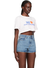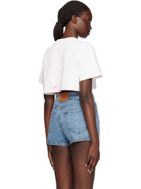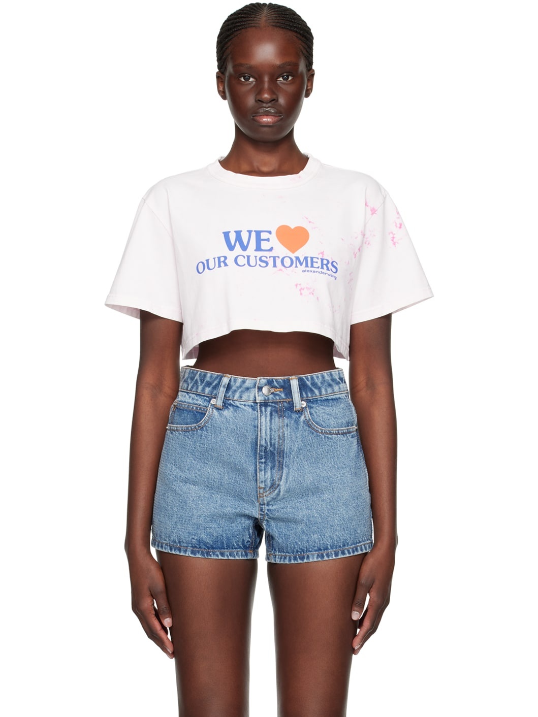 Overdyed cotton jersey T-shirt. Bleach effect throughout. · Pre-shrunk · Rib knit crewneck · Logo and text printed at front · Cropped hem Supplier color: Light pink bleach
