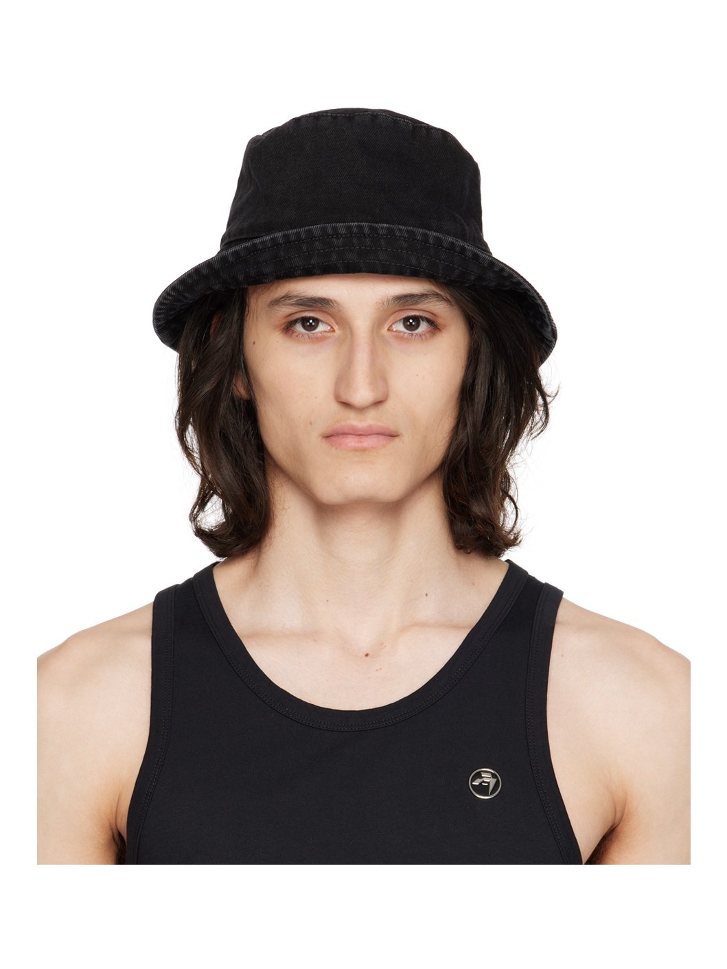Non-stretch denim bucket hat in black. Fading throughout. · Quilted brim · Enameled logo hardware at side · Full plain-woven lining Supplier color: Black 100% cotton. Made in Italy 241820M140000