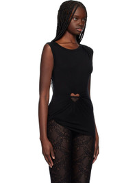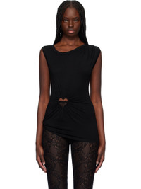 Stretch lyocell jersey tank top. Draping and gathering throughout. · Modified rib-knit crewneck · Cutout with covered graphic hardware at front · Asymmetrical hem Supplier color: Black 95% lyocell, 5% elastane. Made in Japan 251820F111006