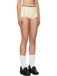 Knit stretch cotton- and nylon-blend shorts. · Striped rib-knit waistband · Logo embroidered at front · Contrast overlock stitching in navy at front and back · Rib-knit cuffs Supplier color: Tofu 72% cotton, 26% polyamide, 2% elastane. Made in Italy 242820F088001