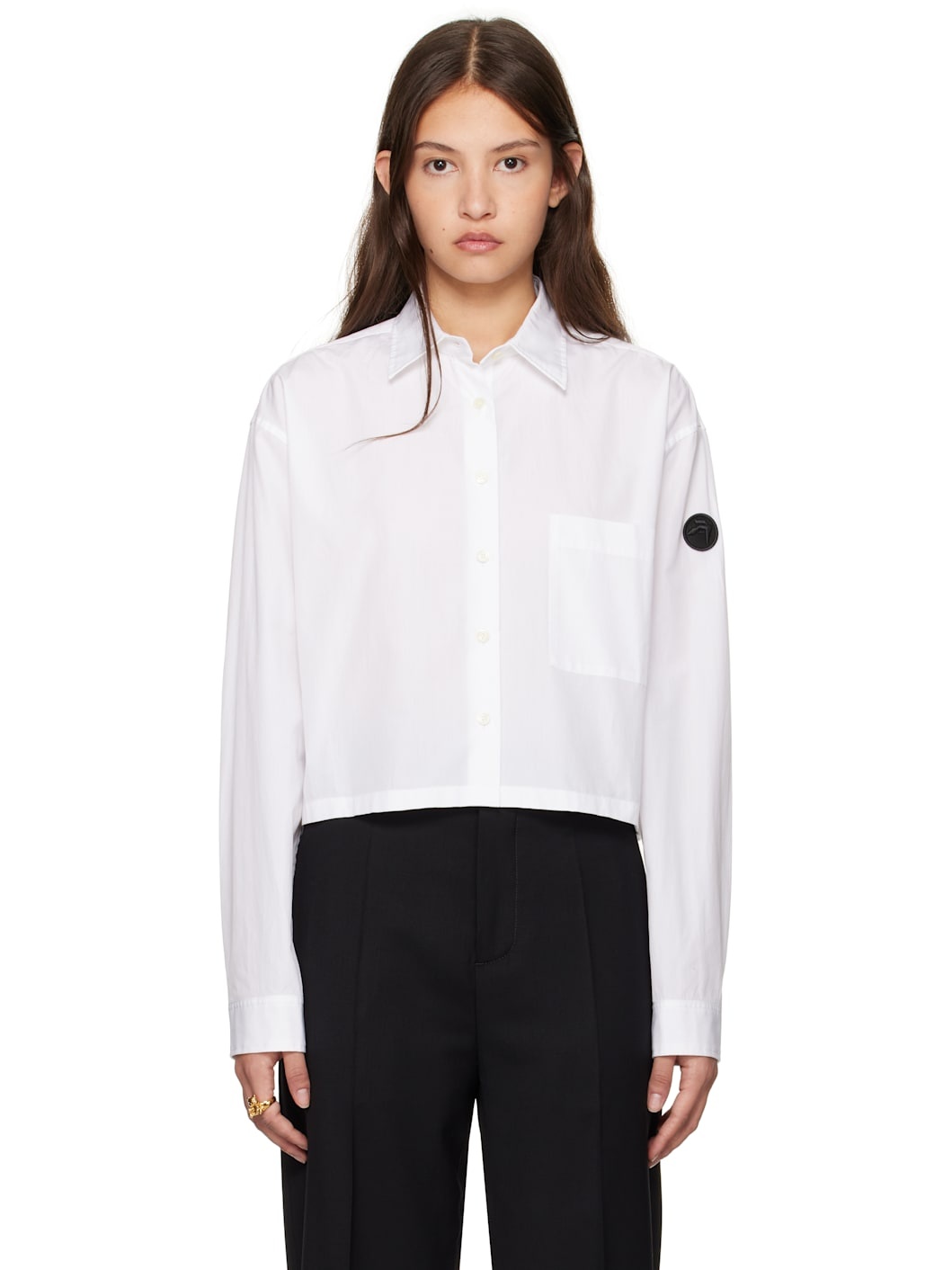 Cotton poplin shirt. · Spread collar · Button closure · Patch pocket · Cropped hem · Embroidered logo patch at sleeve · Pleat at single-button barrel cuffs · Mother-of-pearl hardware Supplier color: White Body: 100% cotton. Trim: 100% viscose. Made in Japan 242820F109000