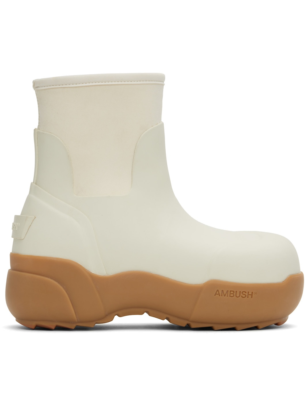 Ankle-high rubber boots in white. · Square toe · Bonded jersey collar · Logo embossed at heel counter · Jersey lining · Treaded rubber platform sole · Platform: H2" Supplier color: White Upper: rubber. Sole: rubber. Made in Indonesia 242820F113001