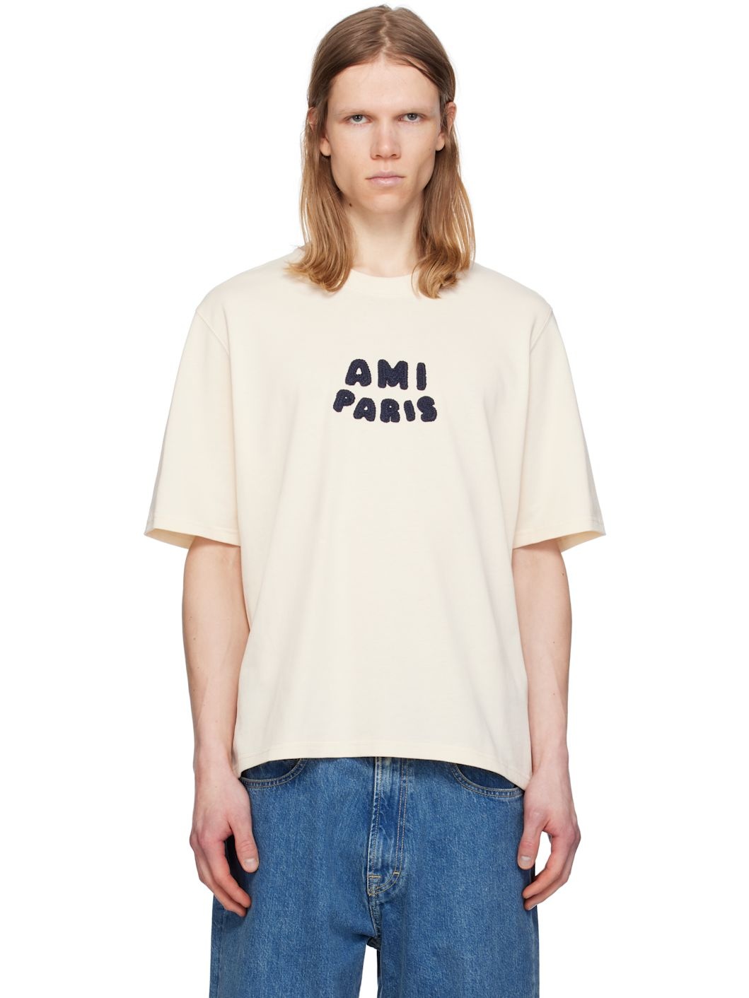 Beige Cotton 'Ami Paris' Patch T-shirt