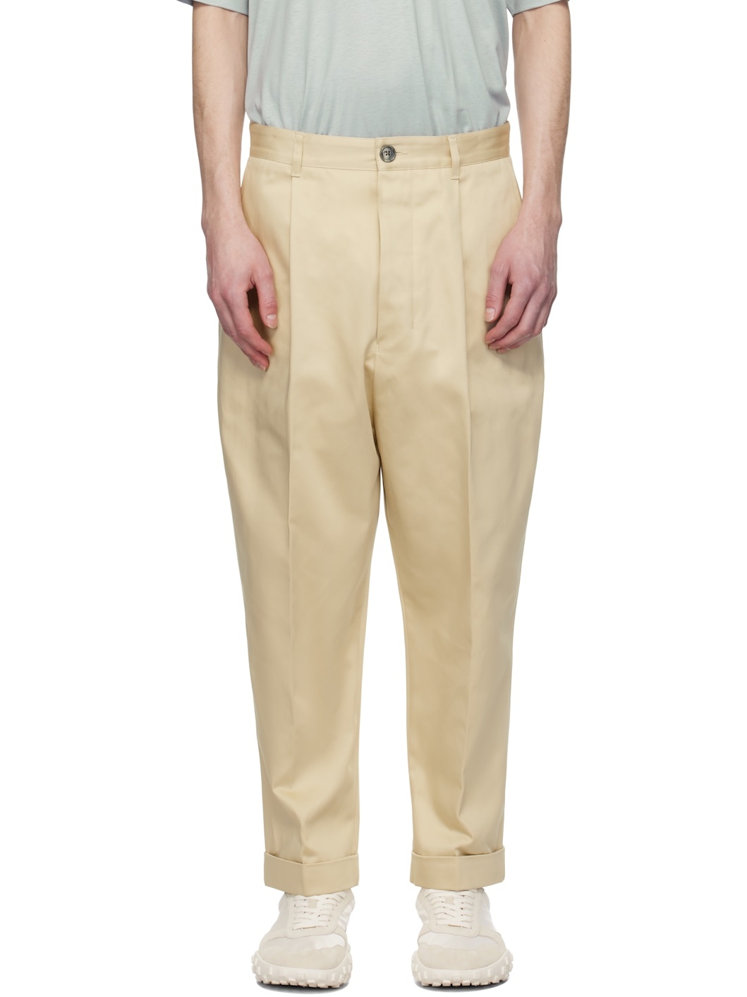Beige Cotton Carrot Oversized Trousers