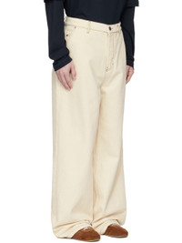 Wide-leg non-stretch denim jeans. · Belt loops · Five-pocket styling · Button fly · Logo patch at back waistband · Logo-engraved silver-tone hardware · Contrast stitching in brown Supplier color: White cream 100% cotton. Made in Portugal 251482M186002