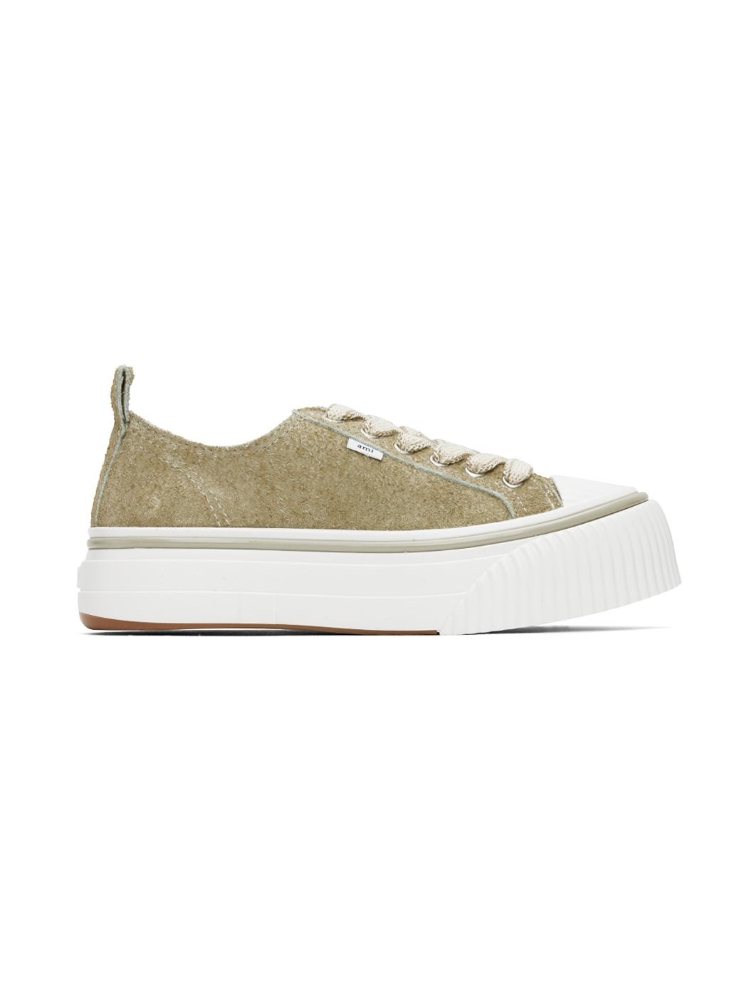 Low-top brushed suede sneakers in beige. · Rubber cap toe · Lace-up closure · Logo embroidered at tongue · Logo flag at outer side · Pull-loop at heel collar · Logo embossed at heel · Twill lining · Textured rubber platform midsole · Treaded rubber sole · Contrast stitching in white · Platform: H1.5" Supplier color: Sand Upper: leather. Sole: rubber. Made in Portugal 242482F128000