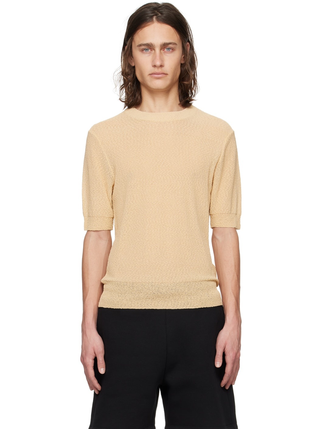 Semi-sheer viscose- and recycled nylon-blend boucle T-shirt. Rib knit crewneck. Supplier color: Cream/721 75% viscose, 25% recycled polyamide. Made in Italy 241482M213028