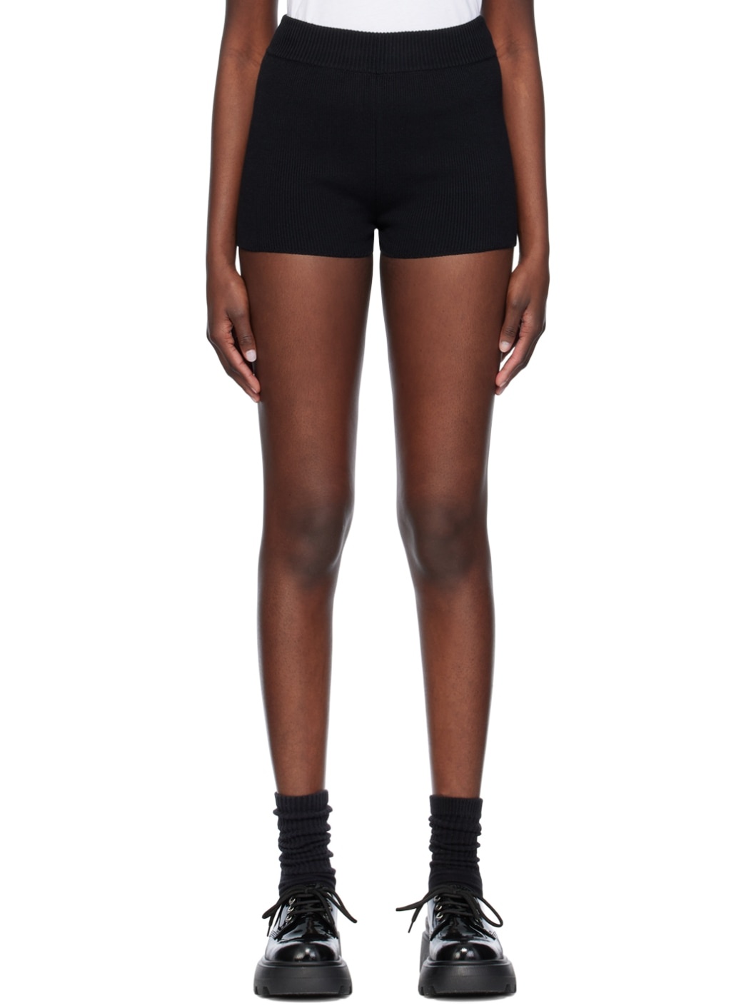 Knit stretch organic cotton- and merino wool-blend shorts. · Rib knit waistband · Two-pocket styling · Logo embroidered at back pocket Supplier color: Black 79% organic cotton, 14% merino wool, 6% polyamide, 1% elastane. Made in Italy 241482F088008