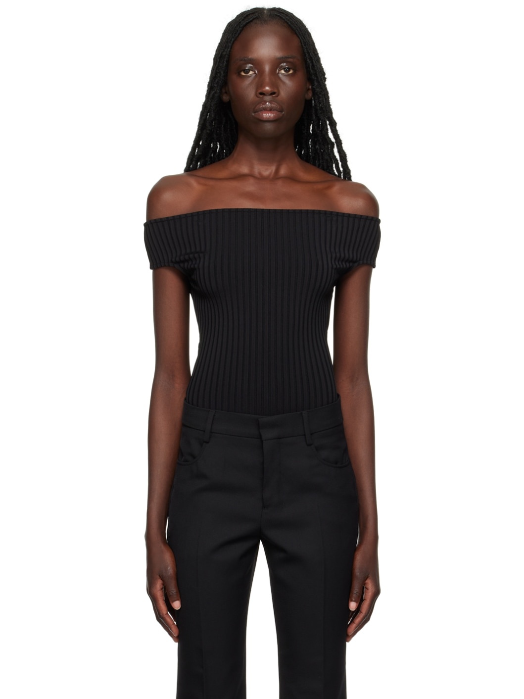 Rib knit stretch viscose- and nylon-blend bodysuit. · Off-the-shoulder construction · Press-stud fastening at bottom Supplier color: Black 76% viscose, 19% polyamide, 5% elastane. Made in Portugal 231482F358000