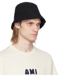 Crocheted cotton-blend bucket hat in black. · Logo appliques at face · Rib-knit brim Supplier color: Black 70% cotton, 25% polyester, 5% other. Made in Italy 251482M140001