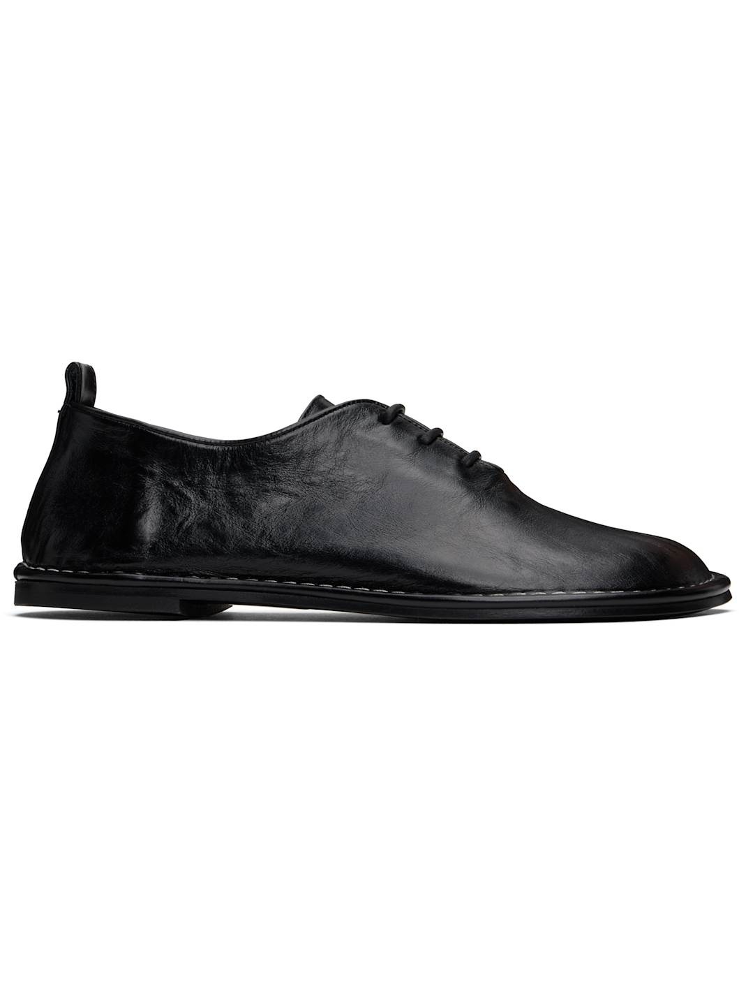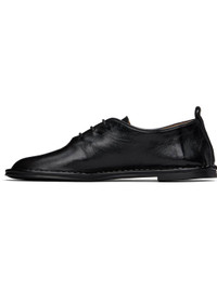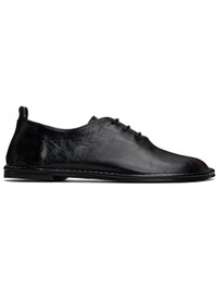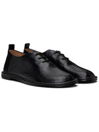 Crinkled leather oxfords in black. · Lace-up closure · Logo-embossed pull-loop at heel collar · Buffed leather lining · Topstitching at welt · Rubber heel · Leather sole Supplier color: Black Upper: leather. Sole: leather, rubber. Made in Portugal 251482F120000