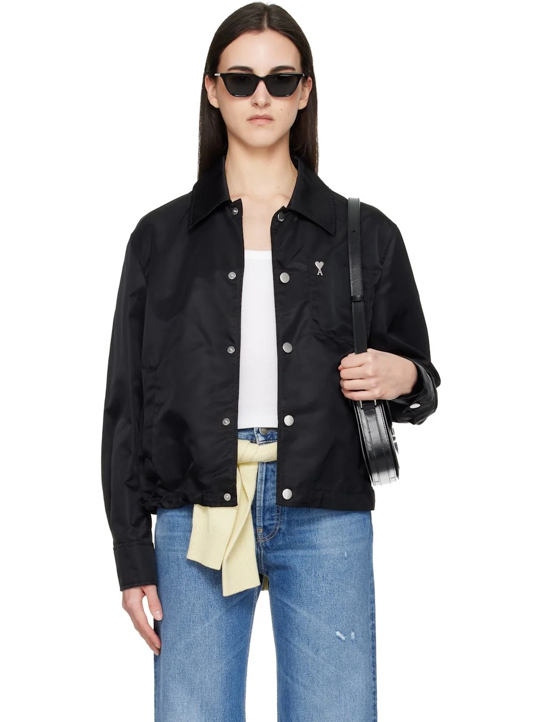 BLACK NYLON AMI DE COEUR STUD BUTTONED JACKET