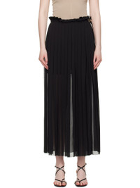 Polyester crepe midi skirt. Knife pleats throughout. · Raw edge at elasticized waistband and hem · Cinch strap and adjustable button fastening at side seam · Partially lined Supplier color: Black 100% polyester. Made in Madagascar 251482F092001