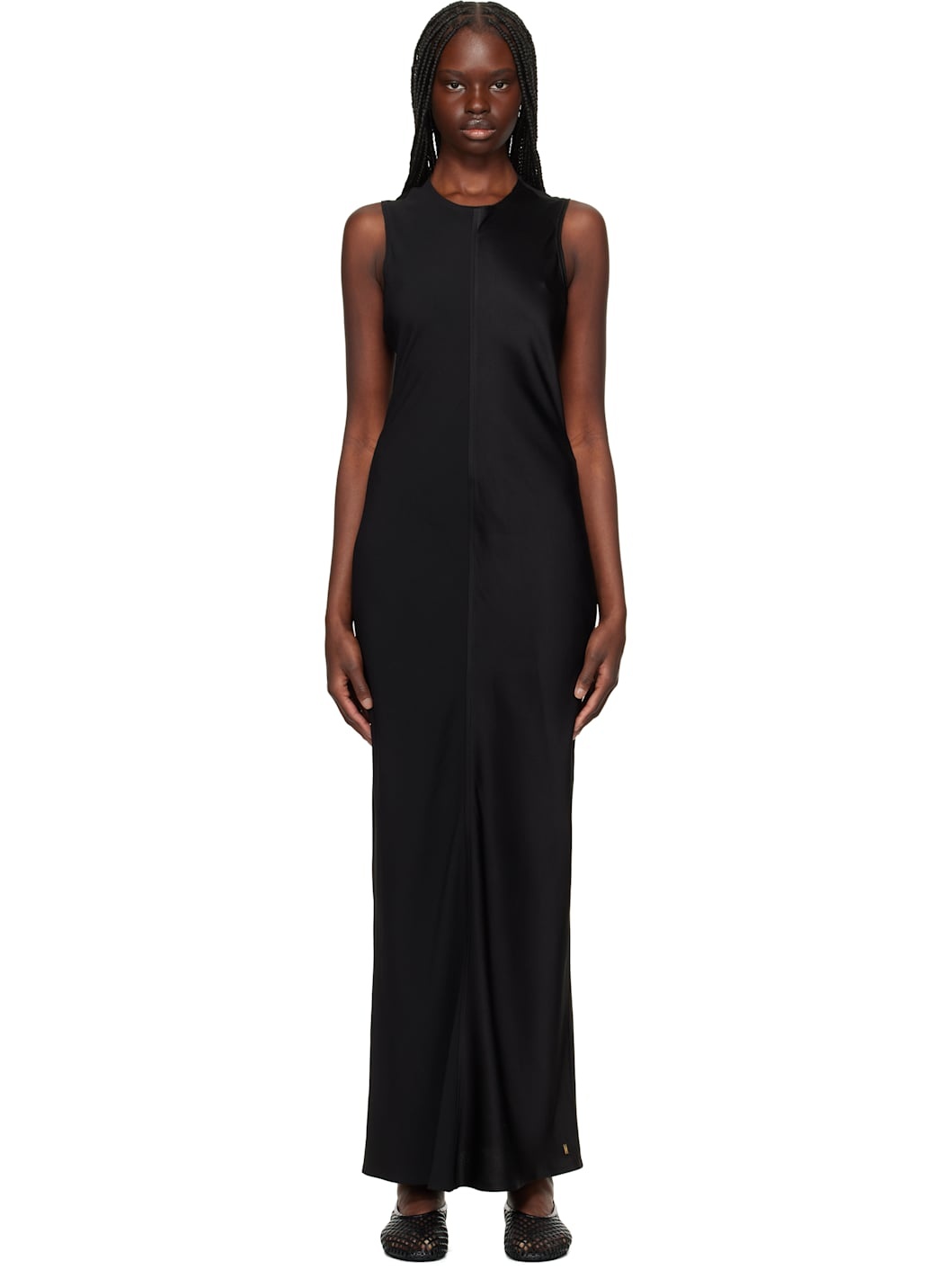 Acetate- and viscose-blend satin and crepe maxi dress. · Paneled construction · Raw edge at round neck and armscyes · Logo hardware at hem · Zip closure at back Supplier color: Black 71% acetate, 29% viscose. Made in Madagascar 251482F055002