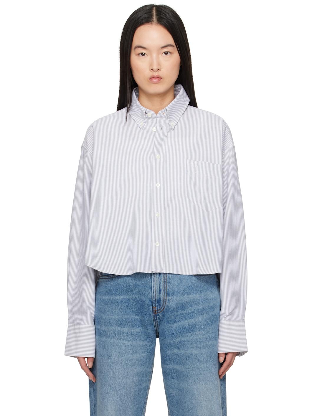 Cotton oxford cloth shirt. Stripes throughout. · Button-down spread collar · Button closure · Logo embossed at patch pocket · Cropped shirttail hem · Dropped shoulders · Pleated single-button barrel cuffs · Mother-of-pearl hardware Supplier color: Note bleu/Blanc creme 100% cotton. Made in Portugal 251482F109010