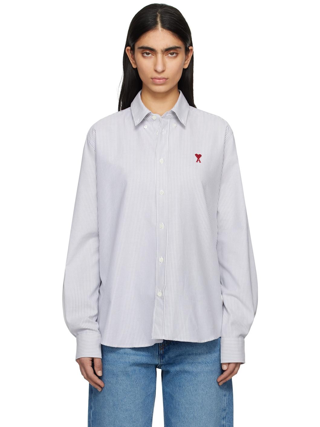 Cotton oxford cloth shirt. Stripes throughout. · Button-down spread collar · Button closure · Embroidered logo at front · Shirttail hem · Pleated single-button barrel cuffs · Mother-of-pearl hardware Supplier color: Note bleue/Blanc creme 100% cotton. Made in Poland 251482F109014