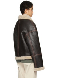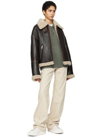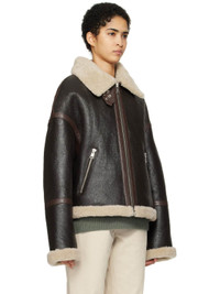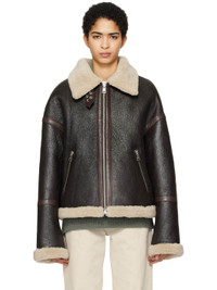 Grained lambskin jacket. Wool fleece trim throughout. · Pin-buckle straps at spread collar · Zip closure · Zip pockets · Dropped shoulders · Wool fleece lining Supplier color: Dark coffee