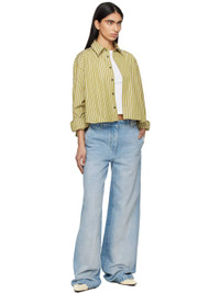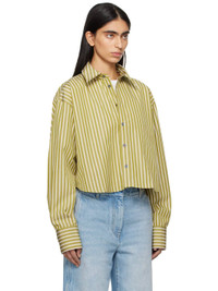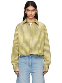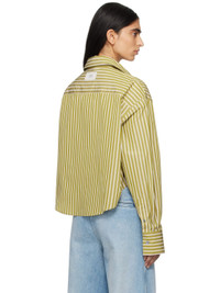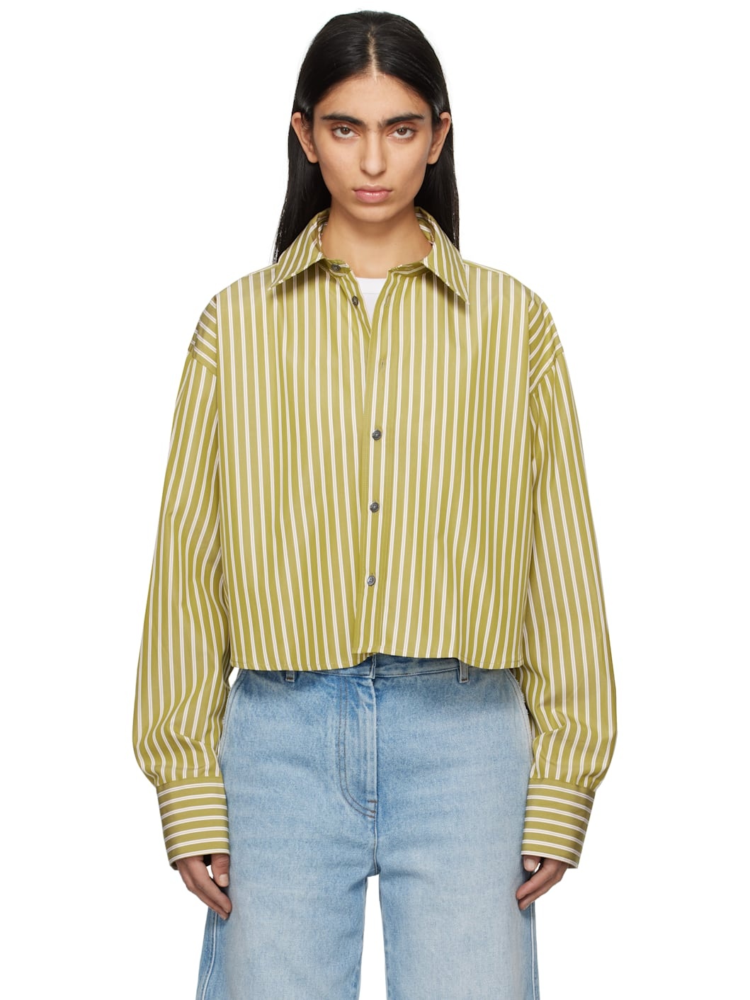 Oversized cotton poplin shirt. Stripes throughout. · Spread collar · Button closure · Cropped shirttail hem · Pleated single-button barrel cuffs · Logo patch at back collar · Mother-of-pearl hardware Supplier color: Lichen/White/Curry 100% cotton. Made in Poland 251482F109019