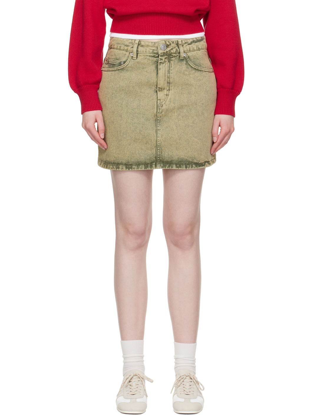Khaki Cotton Denim Miniskirt
