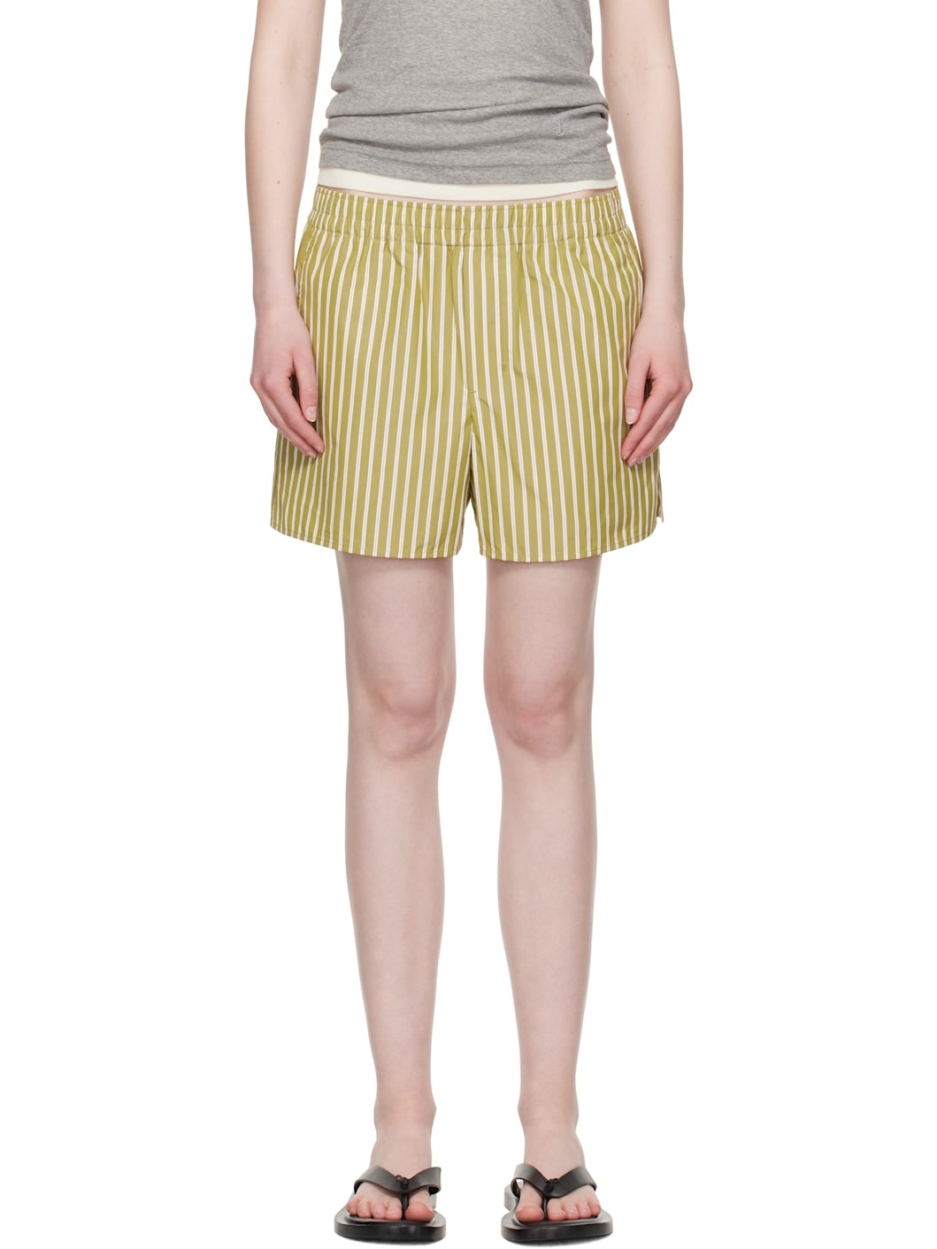 Cotton poplin shorts. Pinstripes throughout. · Elasticized waistband · Three-pocket styling · Mock fly · Vented cuffs · Logo patch at back pocket Supplier color: Lichen/White/Curry 100% cotton. Made in Portugal 251482F088000