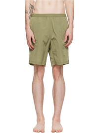 Nylon taffeta swim shorts. · Concealed drawstring at elasticized waistband · Three-pocket styling · Vented cuffs · Logo hardware at back pocket · Partial mesh lining Supplier color: Olive Body: 100% polyamide. Lining: 100% polyester. Made in Portugal 241482M208000