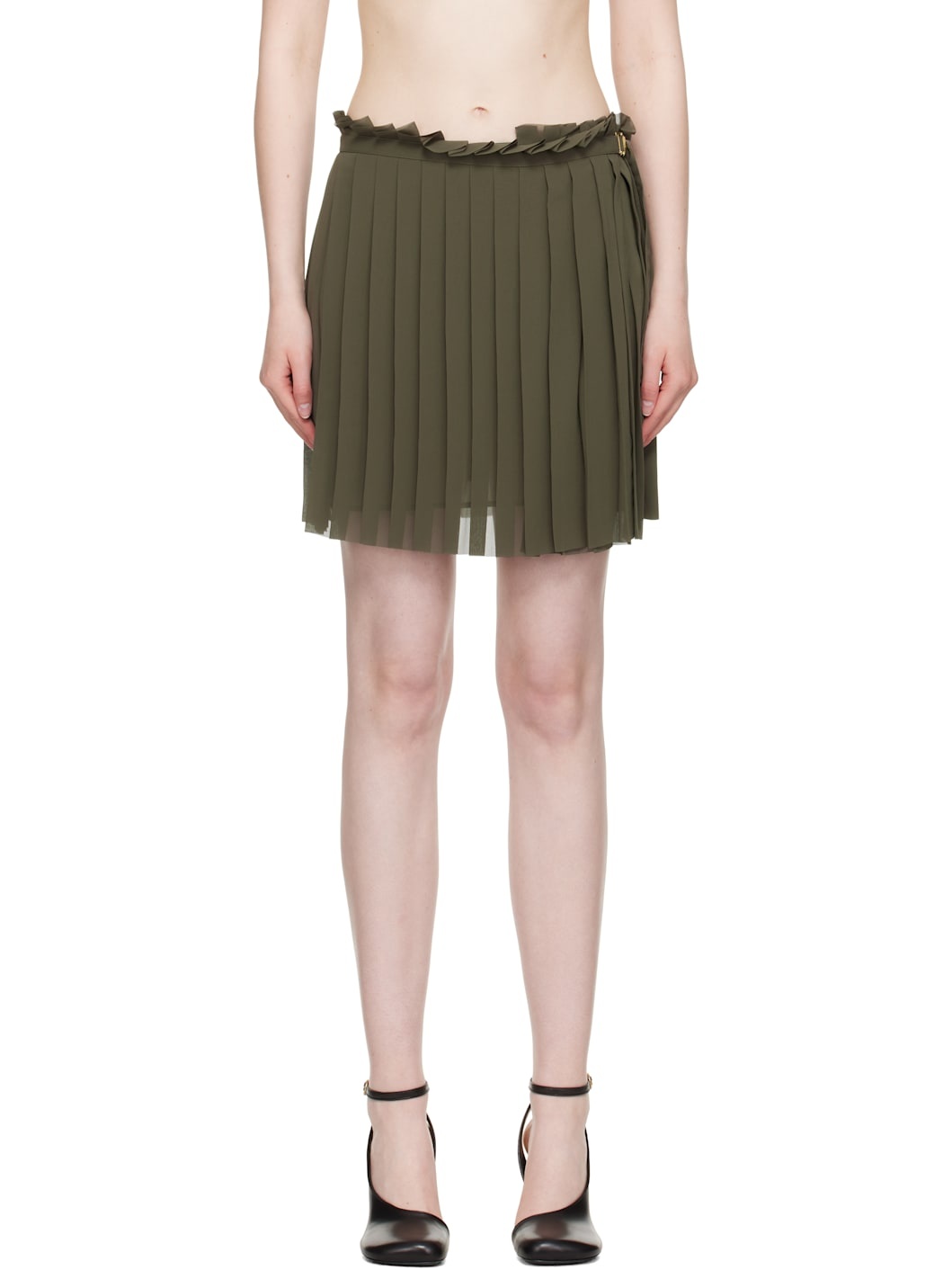 Polyester crepe miniskirt. Knife pleats throughout. · Raw edge at elasticized waistband and hem · Cinch strap and adjustable button fastening at side seam · Fully lined Supplier color: Loden 100% polyester. Made in Madagascar 251482F090000