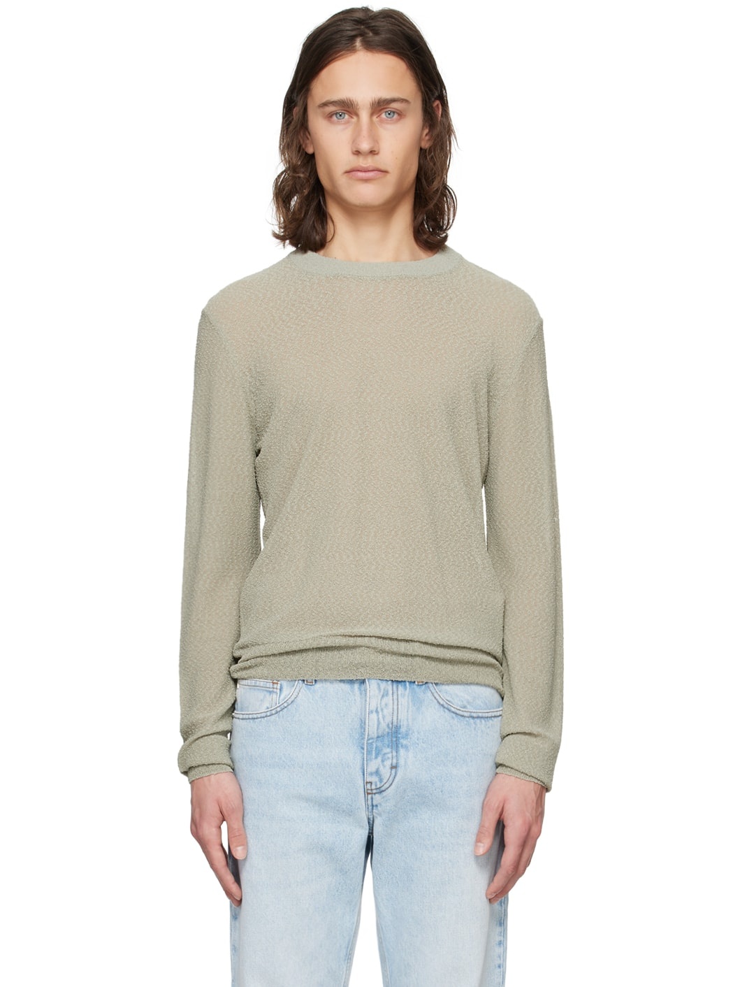 Semi-sheer viscose- and recycled nylon-blend boucle sweater. Rib knit crewneck. Supplier color: Sauge/317 75% viscose, 25% recycled polyamide. Made in Italy 241482M201022