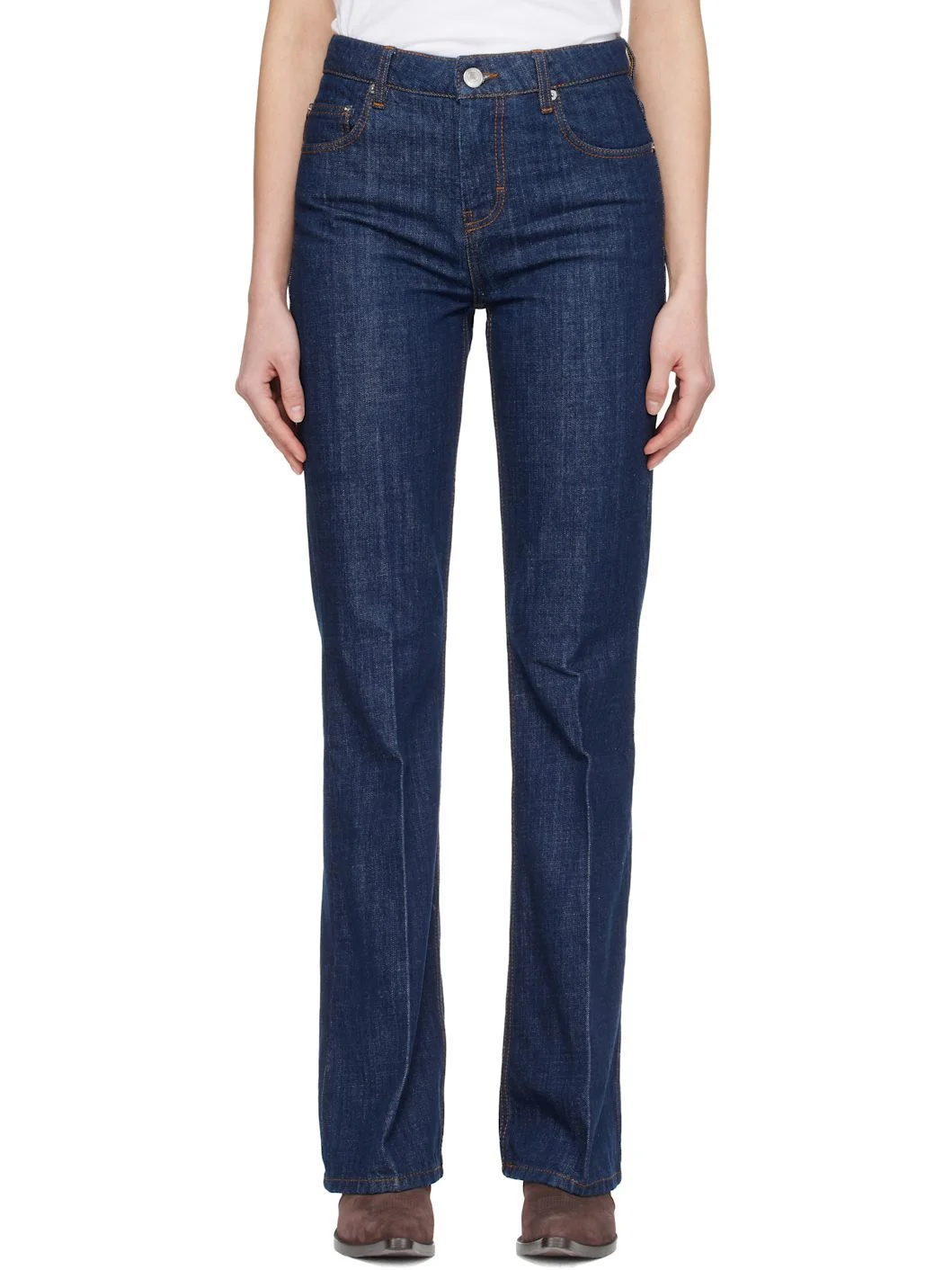 Non-stretch denim jeans. · Bootcut · Low-rise · Belt loops · Five-pocket styling · Zip fly · Jacron logo patch at back waistband · Logo-engraved silver-tone hardware · Contrast stitching in tan Supplier color: Indigo 100% cotton. Made in Portugal 261482F069000