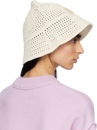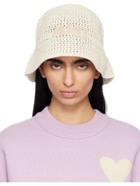Crocheted cotton-blend bucket hat in off-white. · Logo appliques at face · Rib-knit brim Supplier color: White/Cream 70% cotton, 25% polyester, 5% other fibers. Made in Italy 251482F015005