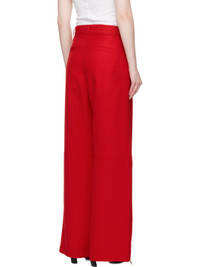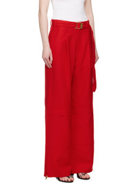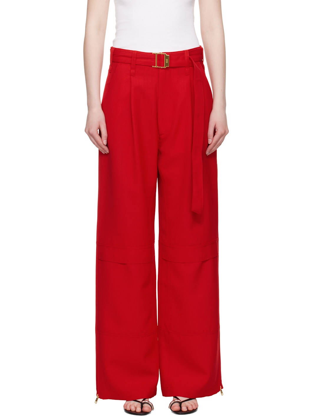 Wide-leg virgin wool canvas cargo pants. · Belt loops and detachable cinch belt at waistband · Four-pocket styling · Zip fly · Mock cargo pocket at front legs · Zip vent at cuffs · Horn hardware Supplier color: Poppy Body: 100% virgin wool. Lining: 60% acetate, 40% cupro. Made in Portugal 251482F087002