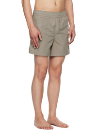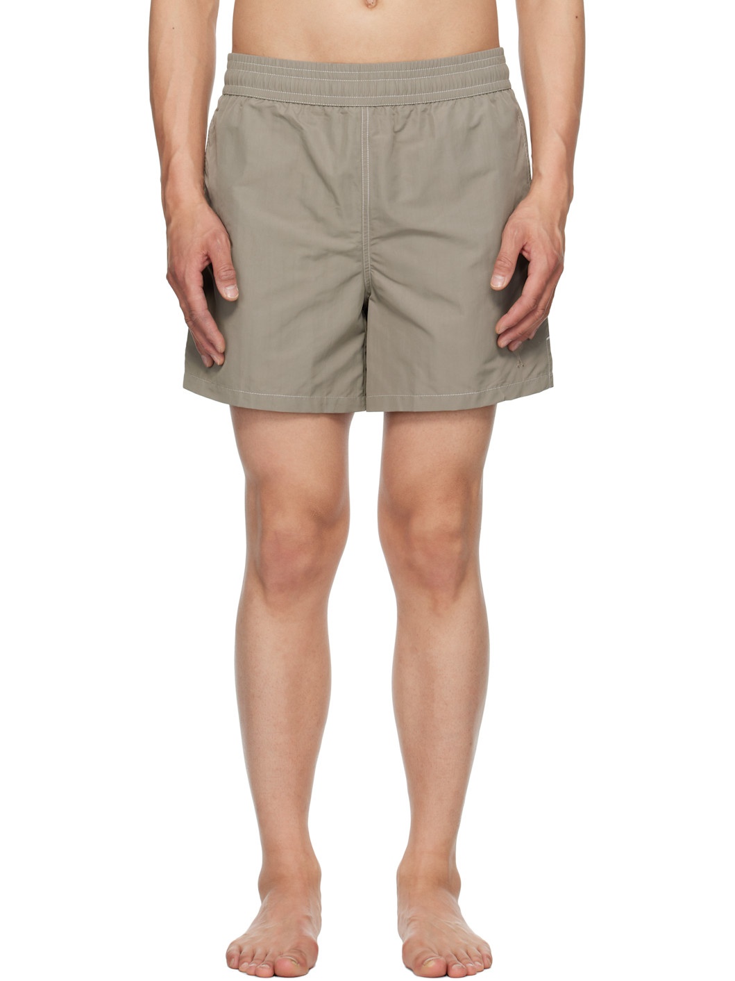 Nylon technical canvas swim shorts. · Concealed drawstring at elasticized waistband · Three-pocket styling · Logo embroidered at leg · Vent at outseams · Brief-style mesh lining · Contrast stitching in white Supplier color: Ash Body: 100% polyamide. Lining: 100% recycled polyester. Made in Portugal 251482M208002